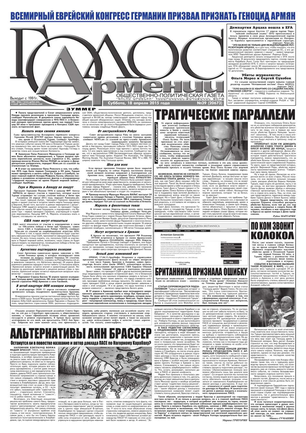 Общественно-политическое издание "Голос Армении" выходит с мая 1991 года и является наиболее популярной, авторитетной и цитируемой русскоязычной газетой страны. Спектр затрагиваемых проблем - самый широкий: от политики и экономики до культуры и социальных сетей, а авторы "Голоса Армении" по праву составляют золотой фонд современной армянской журналистики.
