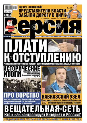 Общероссийская еженедельная газета «Наша Версия» сегодня - это один из ведущих еженедельников журналистских расследований – жесткий и информативный, остроумный и понятный.