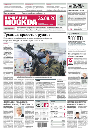 «Вечерняя Москва» — ежедневная российская вечерняя газета, старейшее из вечерних изданий в России, учрежденное в 1923 году. Выходит пять дней в неделю, кроме субботы и воскресенья. Отличается тем, что рассказывает о событиях еще не завершившегося дня. Оперативно освещает хронику и особенности жизни Москвы, охватывает все слои общества и большинство профессиональных и возрастных групп читателей.Издание представлено тремя выпусками – утренним ежедневным, вечерним (выходит три раза в неделю), еженедельным (выходит по четвергам).