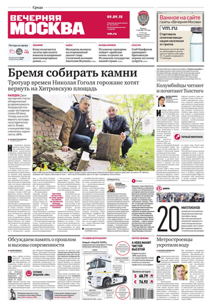 «Вечерняя Москва» — ежедневная российская вечерняя газета, старейшее из вечерних изданий в России, учрежденное в 1923 году. Выходит пять дней в неделю, кроме субботы и воскресенья. Отличается тем, что рассказывает о событиях еще не завершившегося дня. Оперативно освещает хронику и особенности жизни Москвы, охватывает все слои общества и большинство профессиональных и возрастных групп читателей.Издание представлено тремя выпусками – утренним ежедневным, вечерним (выходит три раза в неделю), еженедельным (выходит по четвергам).