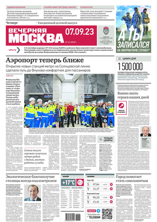 «Вечерняя Москва» — ежедневная российская вечерняя газета, старейшее из вечерних изданий в России, учрежденное в 1923 году. Выходит пять дней в неделю, кроме субботы и воскресенья. Отличается тем, что рассказывает о событиях еще не завершившегося дня. Оперативно освещает хронику и особенности жизни Москвы, охватывает все слои общества и большинство профессиональных и возрастных групп читателей.Издание представлено тремя выпусками – утренним ежедневным, вечерним (выходит три раза в неделю), еженедельным (выходит по четвергам).