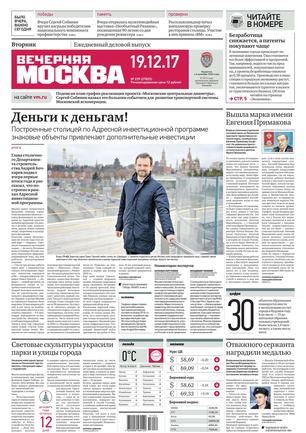 «Вечерняя Москва» — ежедневная российская вечерняя газета, старейшее из вечерних изданий в России, учрежденное в 1923 году. Выходит пять дней в неделю, кроме субботы и воскресенья. Отличается тем, что рассказывает о событиях еще не завершившегося дня. Оперативно освещает хронику и особенности жизни Москвы, охватывает все слои общества и большинство профессиональных и возрастных групп читателей.Издание представлено тремя выпусками – утренним ежедневным, вечерним (выходит три раза в неделю), еженедельным (выходит по четвергам).