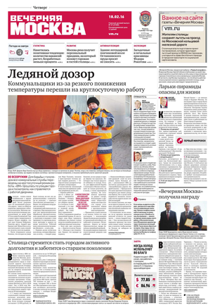 «Вечерняя Москва» — ежедневная российская вечерняя газета, старейшее из вечерних изданий в России, учрежденное в 1923 году. Выходит пять дней в неделю, кроме субботы и воскресенья. Отличается тем, что рассказывает о событиях еще не завершившегося дня. Оперативно освещает хронику и особенности жизни Москвы, охватывает все слои общества и большинство профессиональных и возрастных групп читателей.Издание представлено тремя выпусками – утренним ежедневным, вечерним (выходит три раза в неделю), еженедельным (выходит по четвергам).