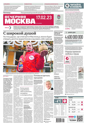 «Вечерняя Москва» — ежедневная российская вечерняя газета, старейшее из вечерних изданий в России, учрежденное в 1923 году. Выходит пять дней в неделю, кроме субботы и воскресенья. Отличается тем, что рассказывает о событиях еще не завершившегося дня. Оперативно освещает хронику и особенности жизни Москвы, охватывает все слои общества и большинство профессиональных и возрастных групп читателей.Издание представлено тремя выпусками – утренним ежедневным, вечерним (выходит три раза в неделю), еженедельным (выходит по четвергам).
