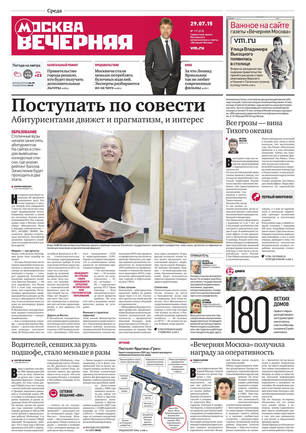 «Вечерняя Москва» — ежедневная российская вечерняя газета, старейшее из вечерних изданий в России, учрежденное в 1923 году. Выходит пять дней в неделю, кроме субботы и воскресенья. Отличается тем, что рассказывает о событиях еще не завершившегося дня. Оперативно освещает хронику и особенности жизни Москвы, охватывает все слои общества и большинство профессиональных и возрастных групп читателей.Издание представлено тремя выпусками – утренним ежедневным, вечерним (выходит три раза в неделю), еженедельным (выходит по четвергам).
