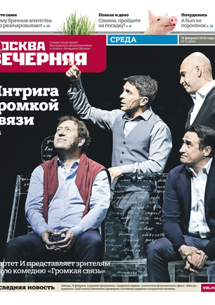 «Вечерняя Москва» — ежедневная российская вечерняя газета, старейшее из вечерних изданий в России, учрежденное в 1923 году. Выходит пять дней в неделю, кроме субботы и воскресенья. Отличается тем, что рассказывает о событиях еще не завершившегося дня. Оперативно освещает хронику и особенности жизни Москвы, охватывает все слои общества и большинство профессиональных и возрастных групп читателей.Издание представлено тремя выпусками – утренним ежедневным, вечерним (выходит три раза в неделю), еженедельным (выходит по четвергам).