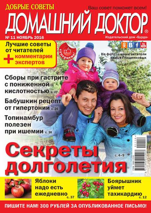 «Добрые советы. Домашний доктор» — это народный журнал о здоровье, уникальный и непохожий на другие издания медицинской тематики. А все потому, что основу журнала составляют письма читателей. В них авторы рассказывают свои истории исцеления, делятся рецептами народной медицины, проверенными на собственном опыте, просто обращаются друг к другу за помощью или дают советы тем, кто не может самостоятельно справиться со своим недугом.