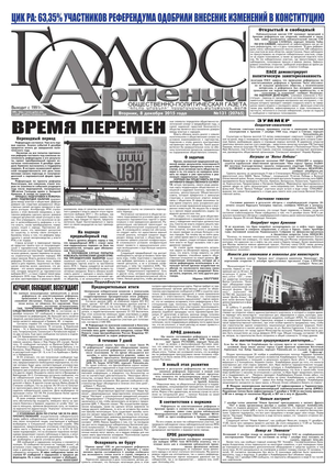 Общественно-политическое издание "Голос Армении" выходит с мая 1991 года и является наиболее популярной, авторитетной и цитируемой русскоязычной газетой страны. Спектр затрагиваемых проблем - самый широкий: от политики и экономики до культуры и социальных сетей, а авторы "Голоса Армении" по праву составляют золотой фонд современной армянской журналистики.