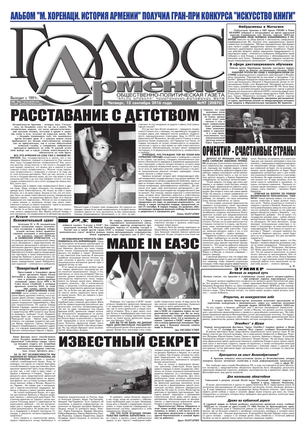 Общественно-политическое издание "Голос Армении" выходит с мая 1991 года и является наиболее популярной, авторитетной и цитируемой русскоязычной газетой страны. Спектр затрагиваемых проблем - самый широкий: от политики и экономики до культуры и социальных сетей, а авторы "Голоса Армении" по праву составляют золотой фонд современной армянской журналистики.