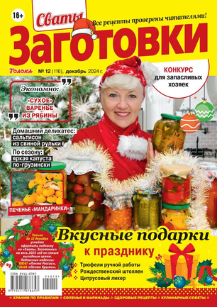 Более 100 рецептов заготовок от Сватов в каждом номере: соленья и маринады, салаты и ассорти, соусы и приправы, заготовки к сезону, сладкие заготовки, напитки, винный погребок, мясные деликатесы, здоровые рецепты, целебные заготовки, дачные хлопоты, правила хранения, а также кроссворды и сканворды для досуга. Лучшими рецептами поделятся с вами сваты Любовь Сергеевна и Михаил Михайлович.