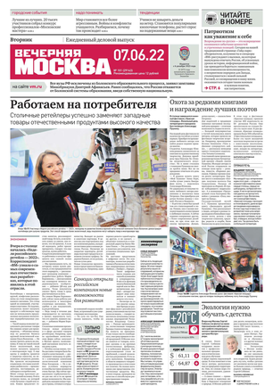 «Вечерняя Москва» — ежедневная российская вечерняя газета, старейшее из вечерних изданий в России, учрежденное в 1923 году. Выходит пять дней в неделю, кроме субботы и воскресенья. Отличается тем, что рассказывает о событиях еще не завершившегося дня. Оперативно освещает хронику и особенности жизни Москвы, охватывает все слои общества и большинство профессиональных и возрастных групп читателей.Издание представлено тремя выпусками – утренним ежедневным, вечерним (выходит три раза в неделю), еженедельным (выходит по четвергам).