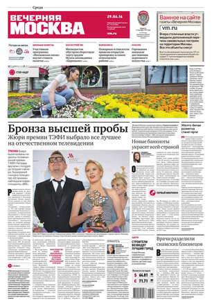 «Вечерняя Москва» — ежедневная российская вечерняя газета, старейшее из вечерних изданий в России, учрежденное в 1923 году. Выходит пять дней в неделю, кроме субботы и воскресенья. Отличается тем, что рассказывает о событиях еще не завершившегося дня. Оперативно освещает хронику и особенности жизни Москвы, охватывает все слои общества и большинство профессиональных и возрастных групп читателей.Издание представлено тремя выпусками – утренним ежедневным, вечерним (выходит три раза в неделю), еженедельным (выходит по четвергам).