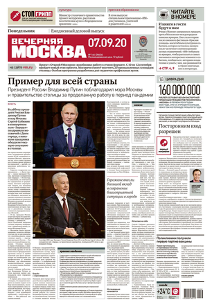 «Вечерняя Москва» — ежедневная российская вечерняя газета, старейшее из вечерних изданий в России, учрежденное в 1923 году. Выходит пять дней в неделю, кроме субботы и воскресенья. Отличается тем, что рассказывает о событиях еще не завершившегося дня. Оперативно освещает хронику и особенности жизни Москвы, охватывает все слои общества и большинство профессиональных и возрастных групп читателей.Издание представлено тремя выпусками – утренним ежедневным, вечерним (выходит три раза в неделю), еженедельным (выходит по четвергам).