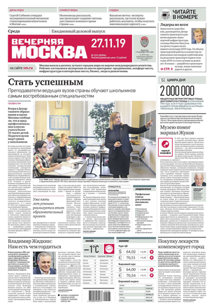 «Вечерняя Москва» — ежедневная российская вечерняя газета, старейшее из вечерних изданий в России, учрежденное в 1923 году. Выходит пять дней в неделю, кроме субботы и воскресенья. Отличается тем, что рассказывает о событиях еще не завершившегося дня. Оперативно освещает хронику и особенности жизни Москвы, охватывает все слои общества и большинство профессиональных и возрастных групп читателей.Издание представлено тремя выпусками – утренним ежедневным, вечерним (выходит три раза в неделю), еженедельным (выходит по четвергам).