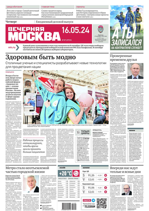«Вечерняя Москва» — ежедневная российская вечерняя газета, старейшее из вечерних изданий в России, учрежденное в 1923 году. Выходит пять дней в неделю, кроме субботы и воскресенья. Отличается тем, что рассказывает о событиях еще не завершившегося дня. Оперативно освещает хронику и особенности жизни Москвы, охватывает все слои общества и большинство профессиональных и возрастных групп читателей.Издание представлено тремя выпусками – утренним ежедневным, вечерним (выходит три раза в неделю), еженедельным (выходит по четвергам).