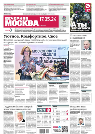 «Вечерняя Москва» — ежедневная российская вечерняя газета, старейшее из вечерних изданий в России, учрежденное в 1923 году. Выходит пять дней в неделю, кроме субботы и воскресенья. Отличается тем, что рассказывает о событиях еще не завершившегося дня. Оперативно освещает хронику и особенности жизни Москвы, охватывает все слои общества и большинство профессиональных и возрастных групп читателей.Издание представлено тремя выпусками – утренним ежедневным, вечерним (выходит три раза в неделю), еженедельным (выходит по четвергам).