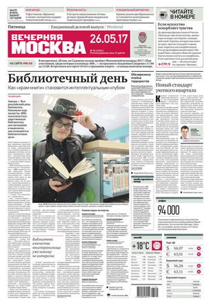 «Вечерняя Москва» — ежедневная российская вечерняя газета, старейшее из вечерних изданий в России, учрежденное в 1923 году. Выходит пять дней в неделю, кроме субботы и воскресенья. Отличается тем, что рассказывает о событиях еще не завершившегося дня. Оперативно освещает хронику и особенности жизни Москвы, охватывает все слои общества и большинство профессиональных и возрастных групп читателей.Издание представлено тремя выпусками – утренним ежедневным, вечерним (выходит три раза в неделю), еженедельным (выходит по четвергам).