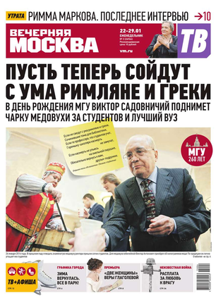 Еженедельный выпуск «Вечерней Москвы» — это значимые события недели, афиша города, новости из сферы отдыха и развлечений, телепрограмма с анонсами и комментариями, авторские колонки журналистов и авторитетные мнения экспертов, детская страничка, специальная рубрика «Золушка», интересные репортажи о необычных судьбах московских жителей, постоянные конкурсы и викторины.