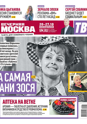 Еженедельный выпуск «Вечерней Москвы» — это значимые события недели, афиша города, новости из сферы отдыха и развлечений, телепрограмма с анонсами и комментариями, авторские колонки журналистов и авторитетные мнения экспертов, детская страничка, специальная рубрика «Золушка», интересные репортажи о необычных судьбах московских жителей, постоянные конкурсы и викторины.