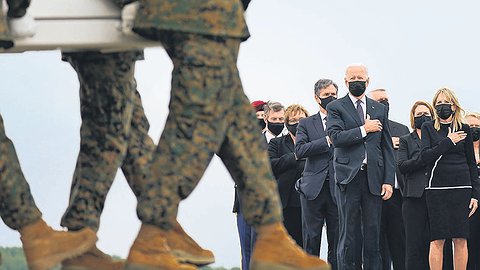 «Их отвага и самопожертвование позволили обеспечить безопасность 117 тыс. человек»,— сообщал Джо Байден накануне. Он назвал погибших «героями, принесшими высшую жертву во славу американских идеалов и во спасение других людей», а в день траурной передачи тел встретился с семьями погибших солдат в частном порядке.